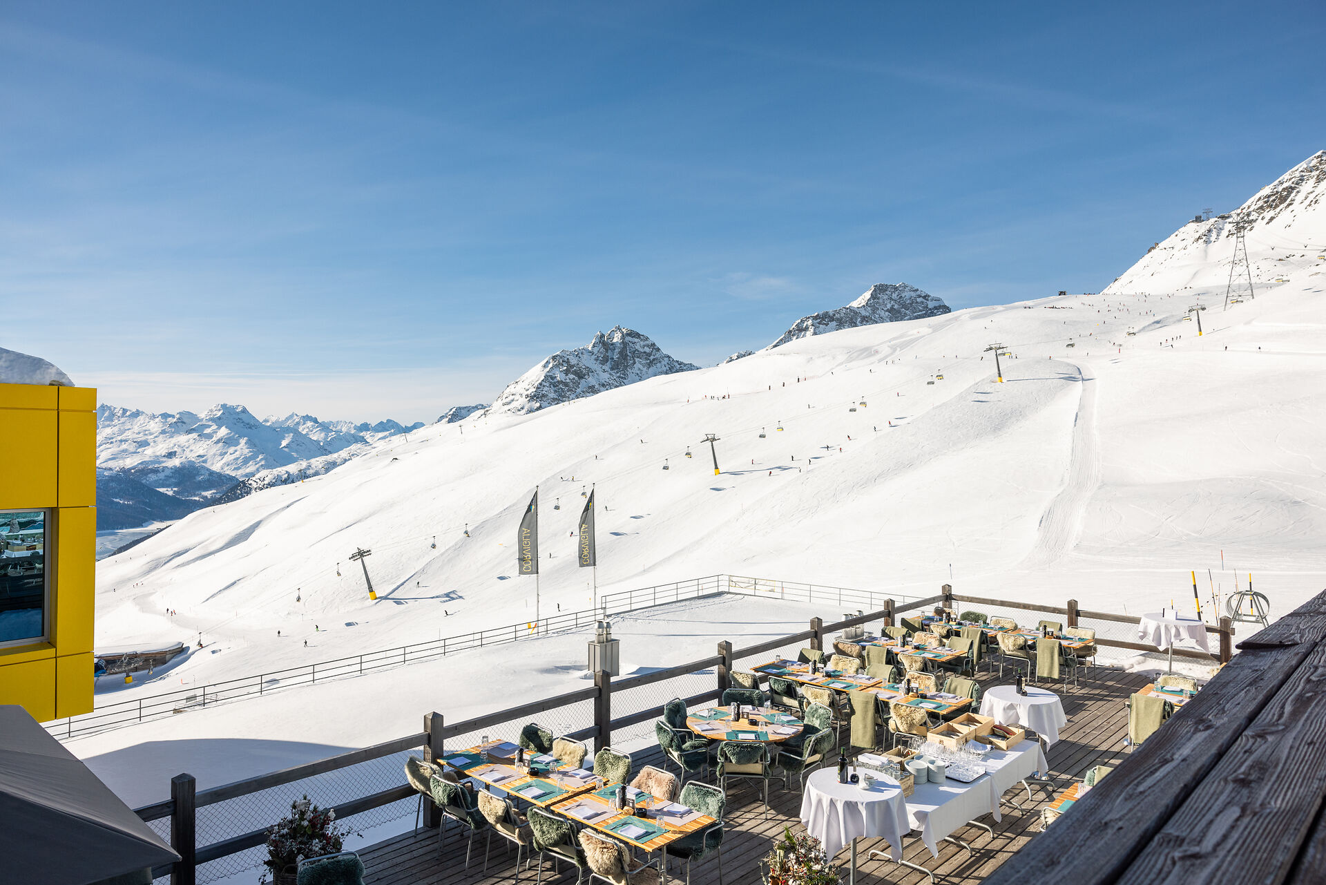 Unser hippes Restaurant White Marmot befindet sich im Hauptgebäude der Corviglia Bergstation. Von der Standseilbahn Chantarella oder der Skipiste aus gelangen Sie in wenigen Schritten zum Kulinarik-Hotspot.